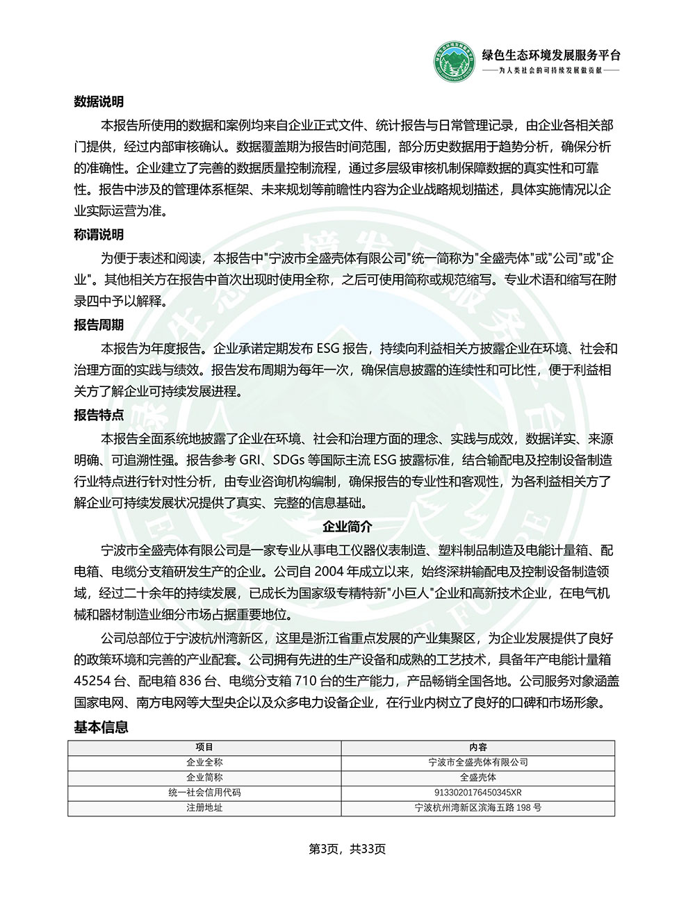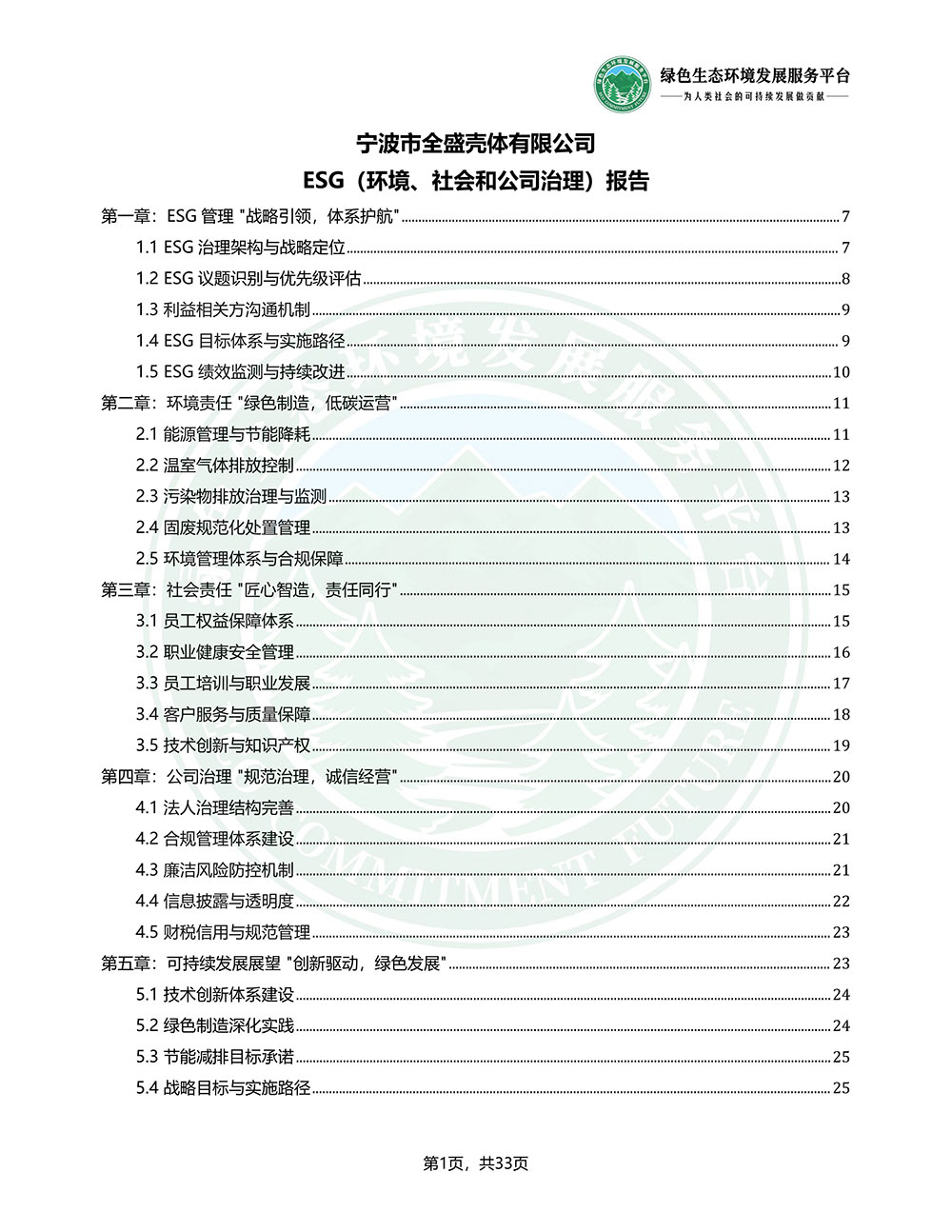 宁波市全盛壳体有限公司_ESG(环境、社会和公司治理)报告