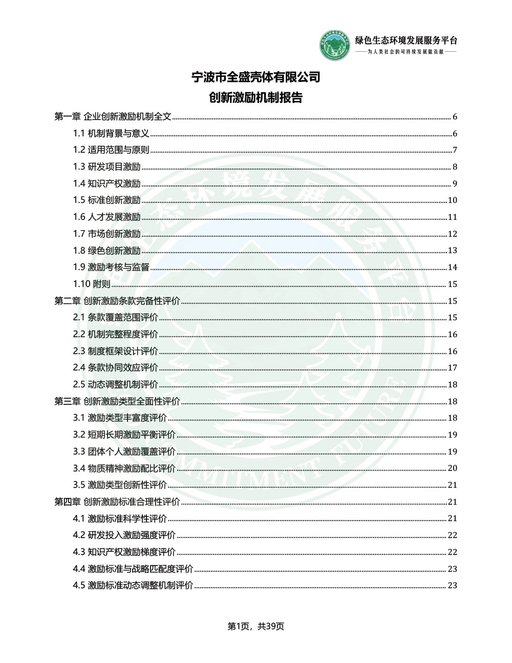 宁波市全盛壳体有限公司_创新激励机制报告